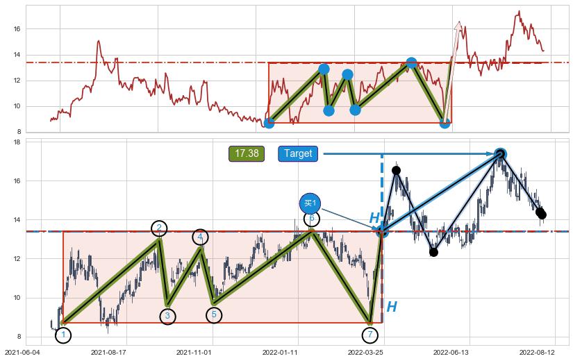 ➢ AI预测: 假定反转启动后, 第❷目标位置(2023-09-14, 14.80)