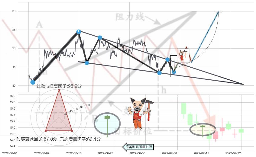 ➢ 🕰 价格走势在2022-07-14至2022-07-14期间形成锤头线(锤子线),残存影响值:5.98