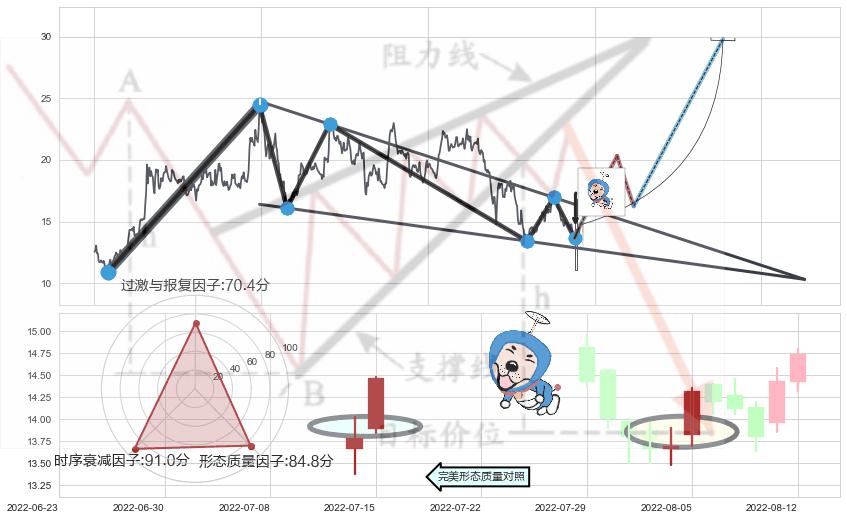 ♘ 支撑价格位13.83,可信任强度93.73%,距离最后交易2022-08-12形成的收盘价格14.74相差 -6.14%