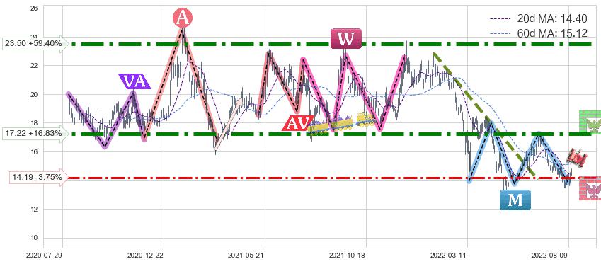 ♘ 阻力价格位17.22,可信任强度90.20%,距离最后交易2022-08-12形成的收盘价格14.74相差 +16.83%