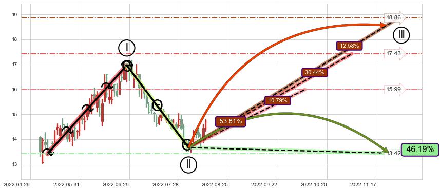 ♘ 阻力价格位18.06,可信任强度95.71%,距离最后交易2022-08-12形成的收盘价格14.74相差 +22.52%