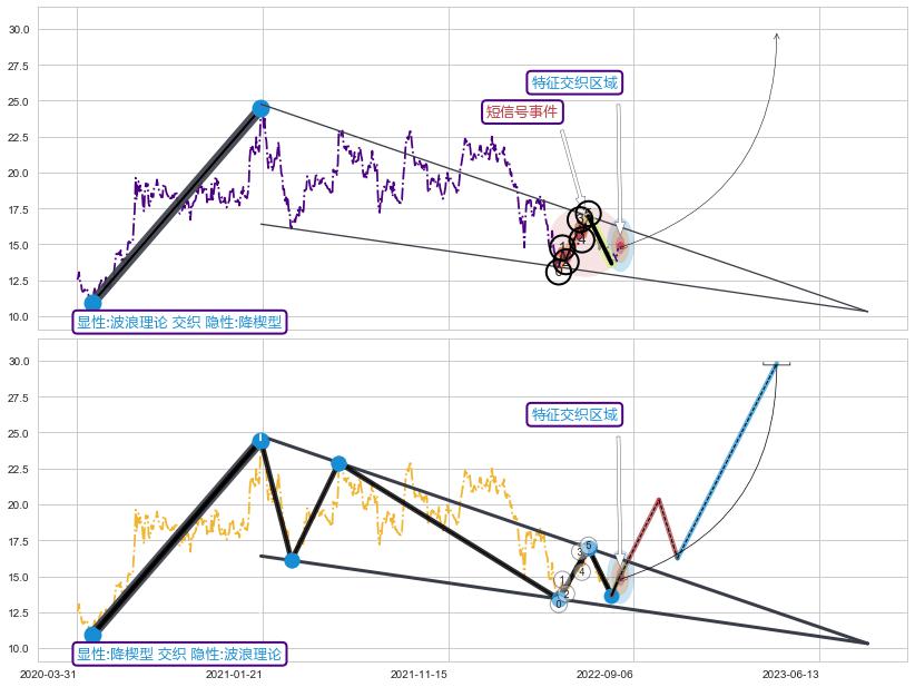 ➢ 波浪理论属【短级别信号事件】降楔型属【长级别信号事件】长短周期组合信号事件, 短长事件长度比10.21%