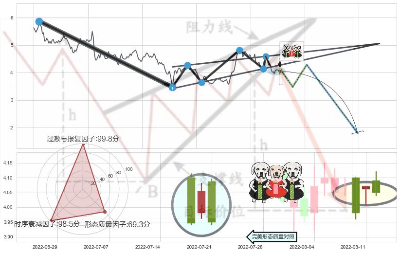 ➢ 🕰 价格走势在2022-08-10至2022-08-12期间形成两黑夹一红,残存影响值:-4.52