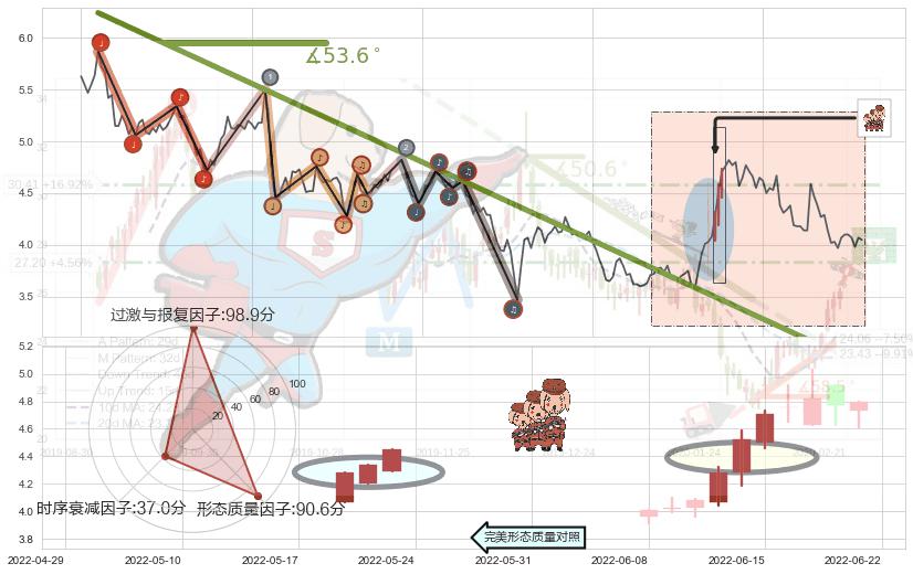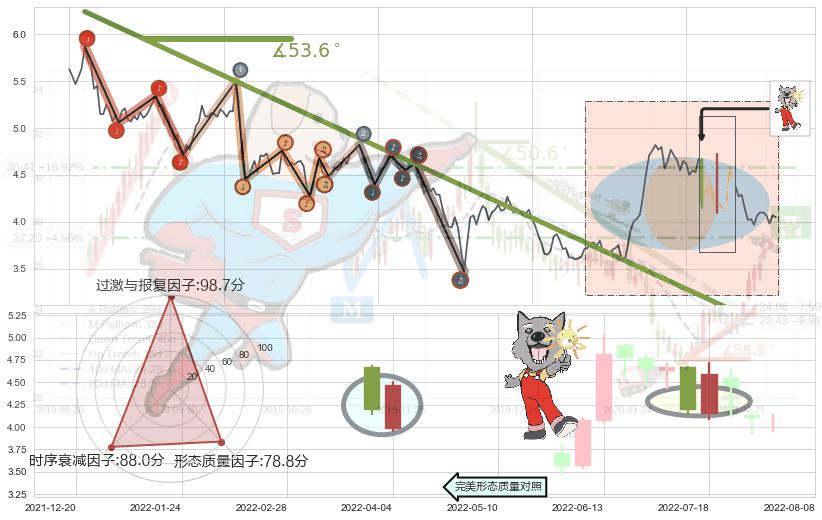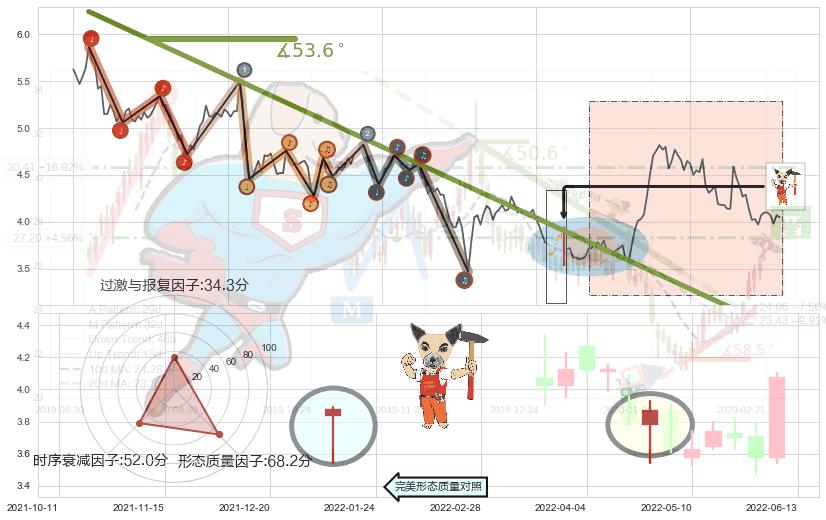 ➢ 2021-09-13-2022-06-15下跌趋势存在反转上涨[机会],其原下跌趋势的阻力位(2.845)已被突破[强支撑信号],原下跌趋势角度: 53.6˚