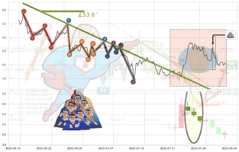 ➣ 【已达成】最小【整理】第一目标价格→(2022-03-14: 3.823 ), 后续继续【整理】下跌动力依然存在,下跌空间适中