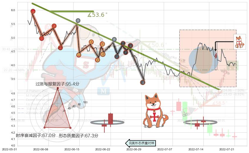 ➢ 【卖1】: 激进型 卖点→(2022-07-29: 4.20 )形成突破升🚩楔型【整理】形态