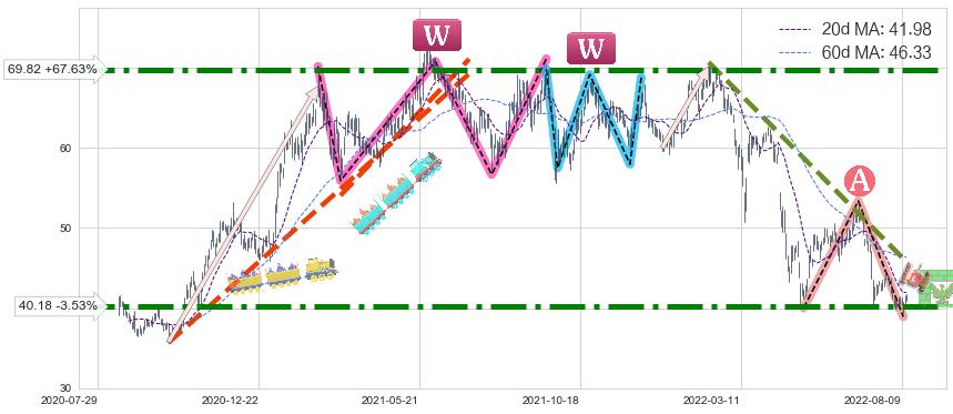 ♘ 阻力价格位40.18,可信任强度93.38%,距离最后交易2022-08-12形成的收盘价格41.65相差 -3.53%