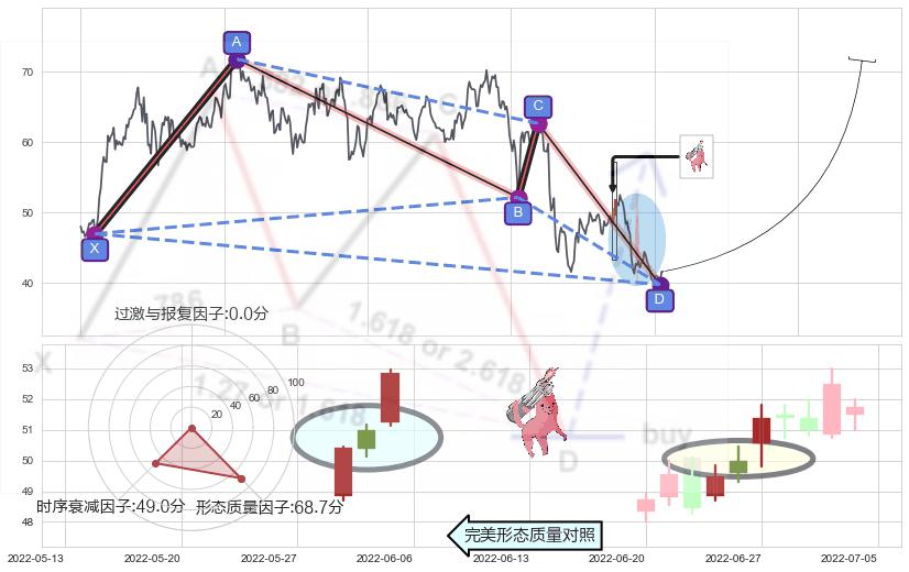 ➢ 锤头线(锤子线) 🔜 谐波蝴蝶d拐点上涨支撑 综合量化分数:51.02 【中性】