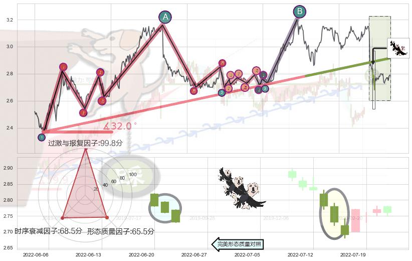 ➢ 🕰 价格走势在2022-07-13至2022-07-15期间形成三只乌鸦,残存影响值:-6.85