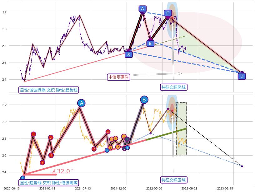 ➣ 未完成【蝴蝶】形态起点X: 2021-12-14, 已到达C点: 2022-05-31, 预测最终D点: 2023-03-21, 共299交易日
