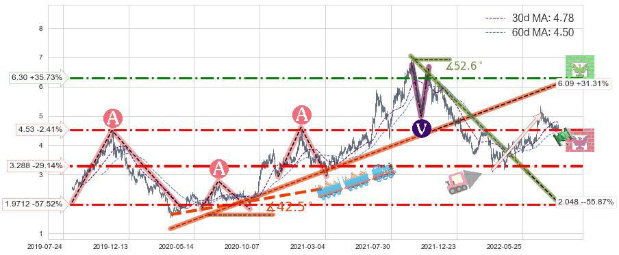 ➢ 2022-06-27到达第❶价格目标位置4.78