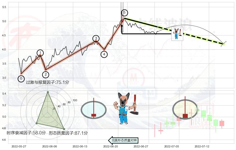 ➢ 🕰 价格走势在2022-07-21至2022-07-27期间形成高档五阴线,残存影响值:-5.54