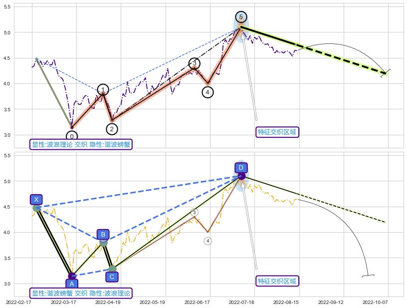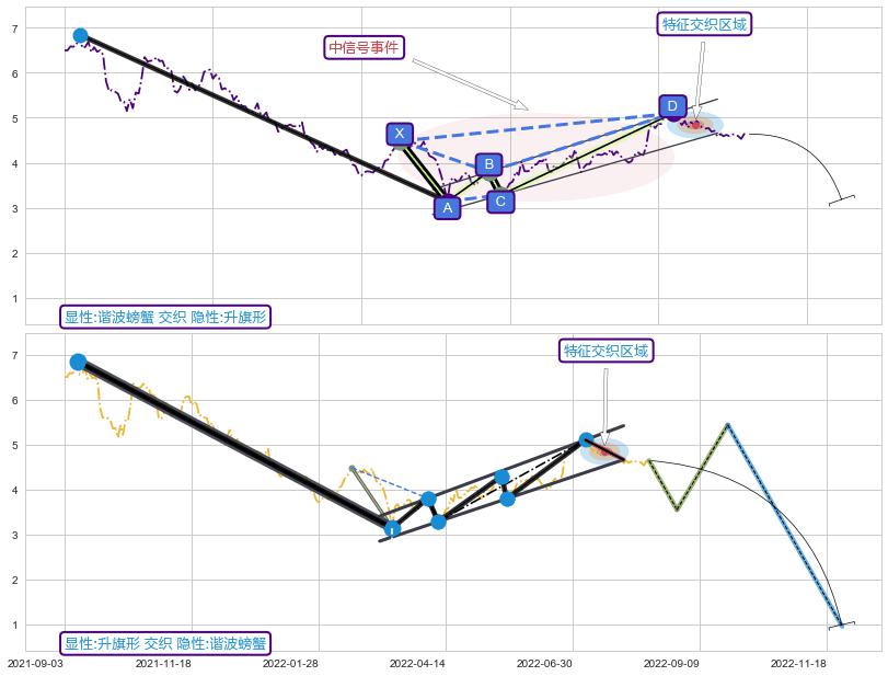 ➣ 已完成【螃蟹】形态起点X: 2022-02-21, 终点D: 2022-07-08, 共93交易日