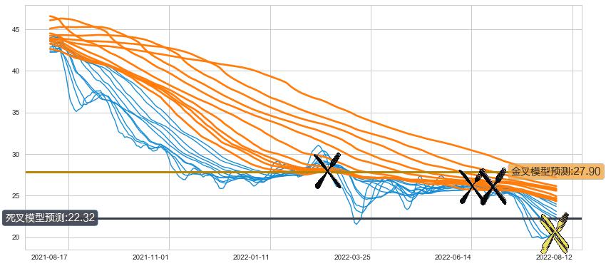➣ 80小时均线于(2022-02-23: 27.88)形成【死叉】基于【死叉历史模型】预测死叉后最低波谷价格: 23.32, 死叉后最低价格18.42,已经下跌超出预测最低波谷价格, 预期反弹