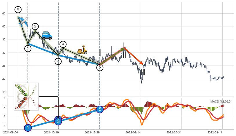 ➣ 第一, 三, 五浪下跌动能逐渐【衰弱变小】,趋势呈现不稳迹象