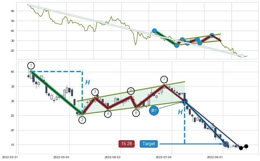 ➣ 最小中继整理跌幅→𝐇: 14.65 (𝐇旗杆的长度:旗杆起点→顶点)