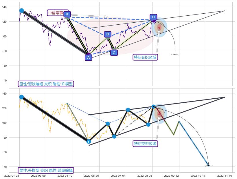 ➢ 谐波蝙蝠属【中级别信号事件】升楔型属【长级别信号事件】中长周期组合信号事件,中长事件长度比64.06%