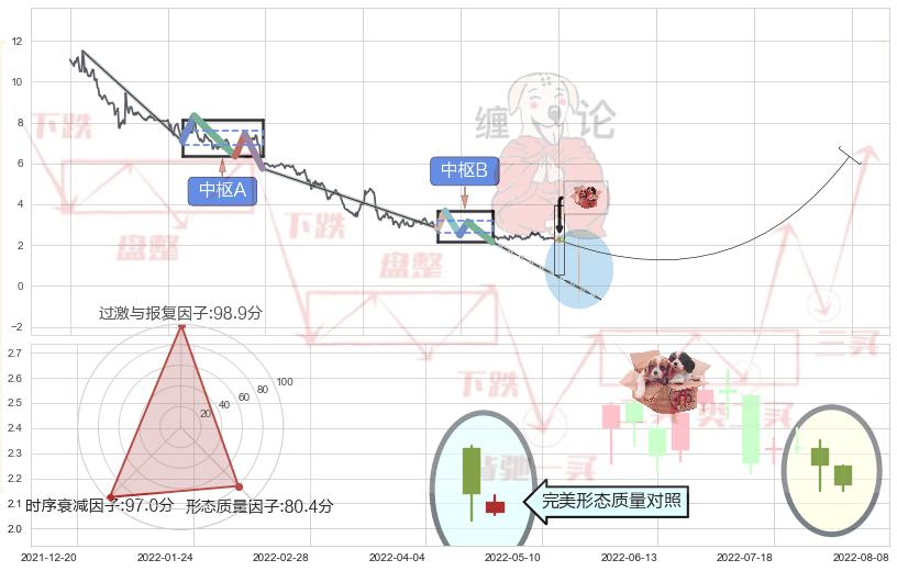 ➣ 上涨螺旋桨形态 + 缠论中枢点下降缠临近1买反弹点信号叠加后【信号初始稳固度】中等,【看多】信号叠加【可信度影响中等】
