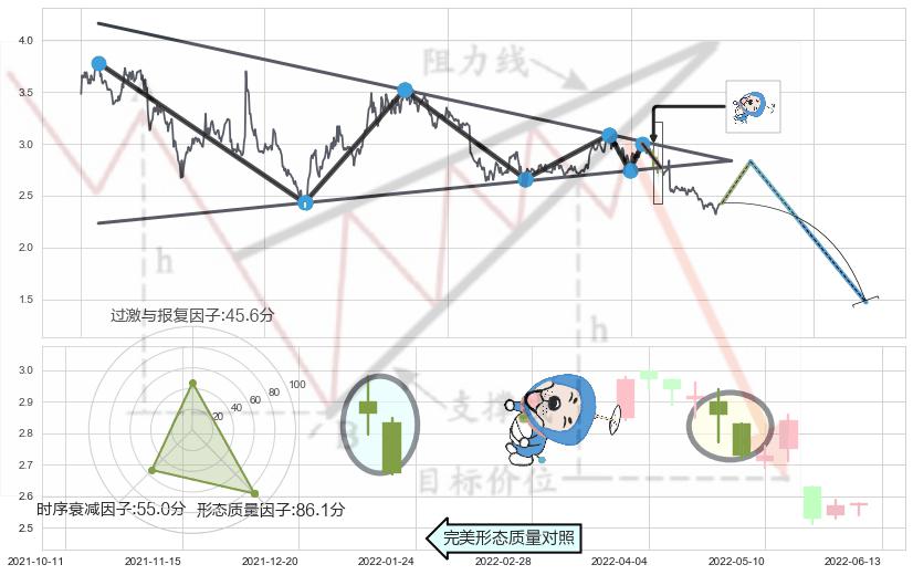 ➢ 【卖1】: 激进型 卖点→(2022-05-06: 2.770 )形成突破下降【对称】三角形整理【整理】形态