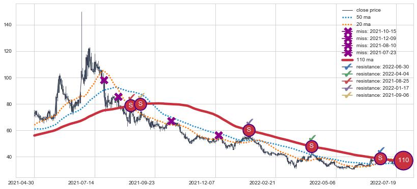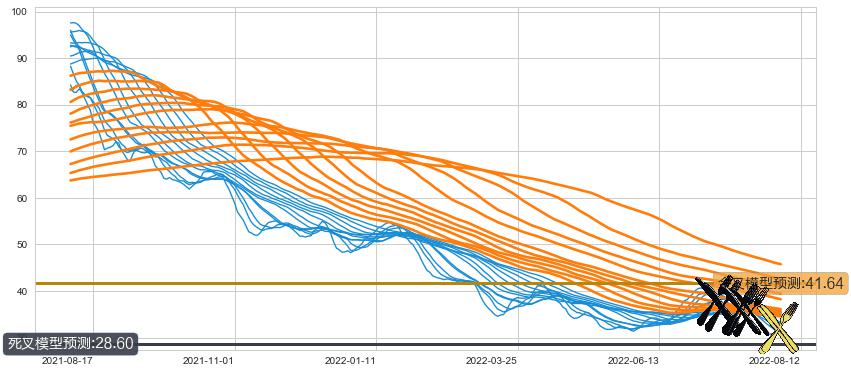➣ 55小时均线于(2022-07-28: 35.29)形成【死叉】基于【死叉历史模型】预测死叉后最低波谷价格: 27.43, 死叉后最低价格30.20,尚未达到预测最低波谷价格, 预期继续下跌