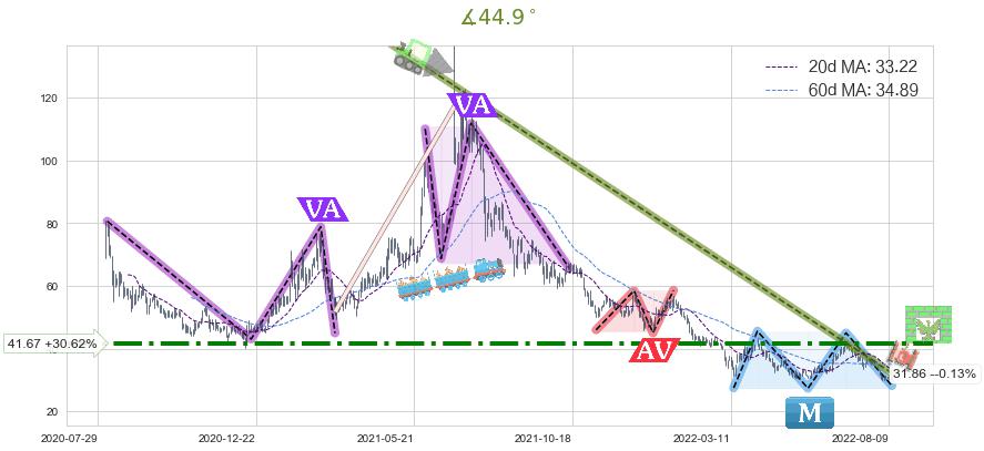 ➣ 【仅预测突破】最后价格:31.90与预测突破价格:43.05→【空间较大】后续最小【反转】第一目标价格→(2022-11-01: 55.90 )
