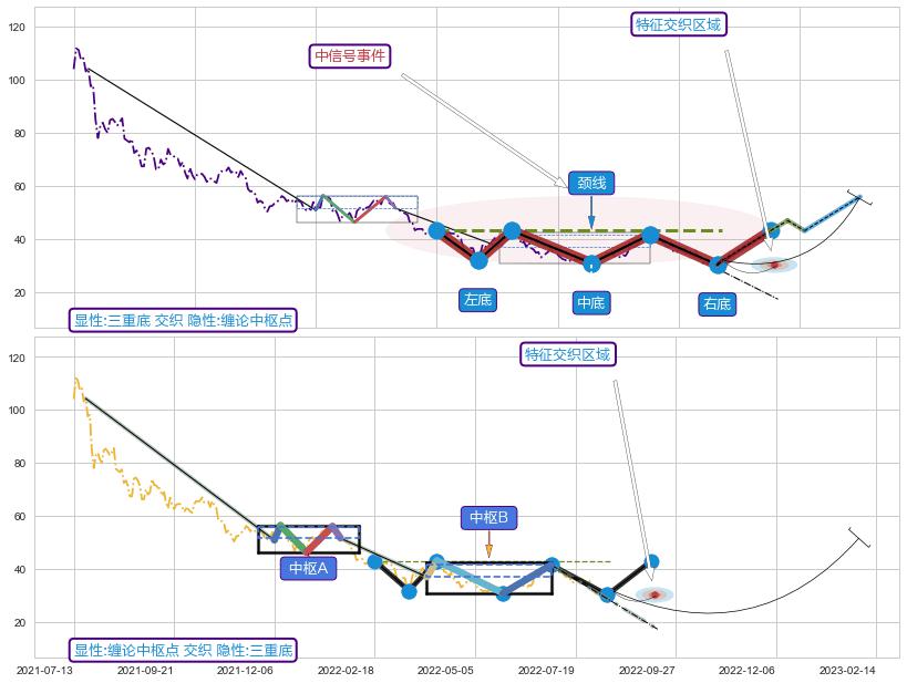 ➢ 三重底属【中级别信号事件】缠论中枢点属【长级别信号事件】中长周期组合信号事件,中长事件长度比53.23%