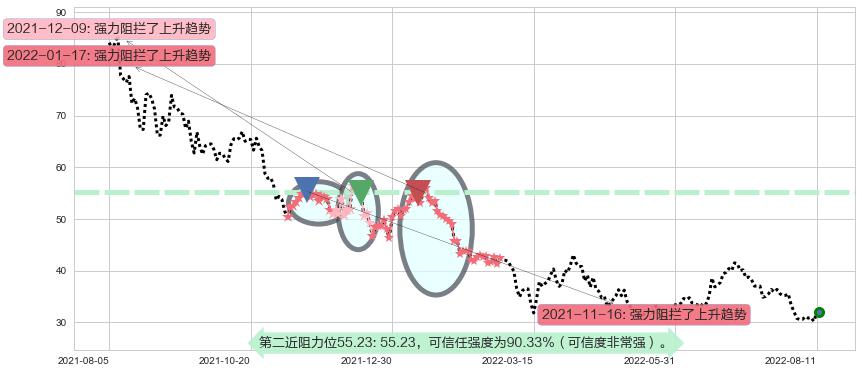 ♘ 阻力价格位55.23,可信任强度90.33%,距离最后交易2022-08-12形成的收盘价格31.90相差 +73.12%