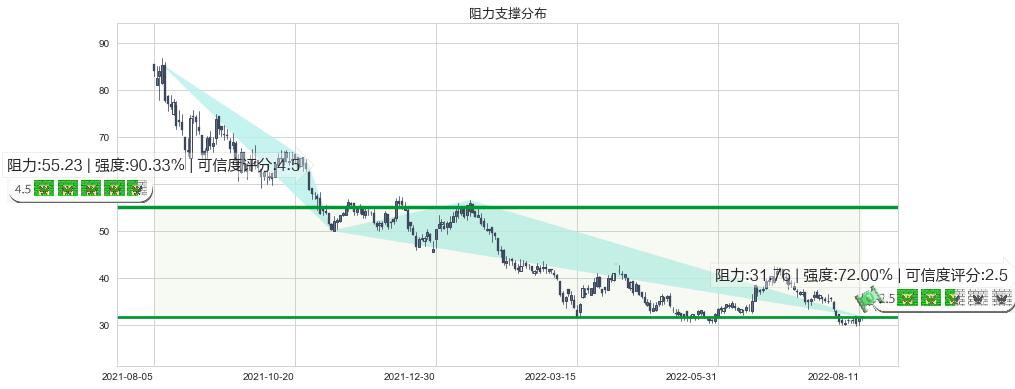 ♘ 阻力价格位31.76,可信任强度72.00%,距离最后交易2022-08-12形成的收盘价格31.90相差 -0.42%