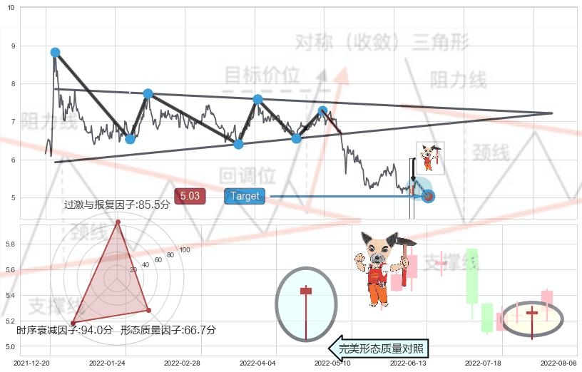 ➢ 锤头线(锤子线) 🔜 下降对称三角整理临近target支撑拐点上涨 综合量化分数:55.09 【偏多】