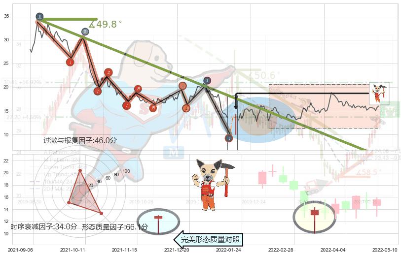 从2021-09-01至2022-04-13,共包含152个交易日,阶段股价下跌-65.50%,阶段股价变动位移路程比: 1 : 8,下跌趋势角度: 49.8