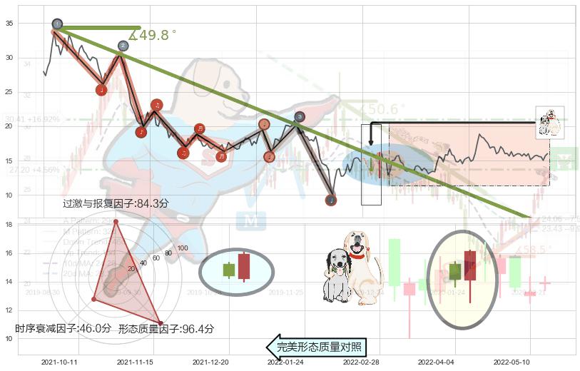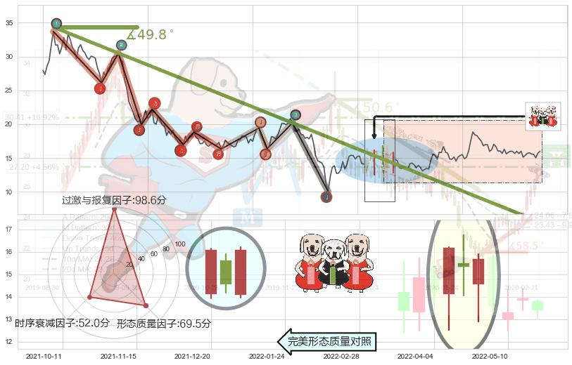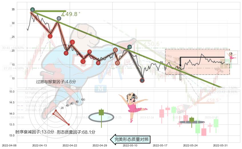 ➢ 2021-09-01-2022-04-13下跌趋势存在反转上涨[机会],其原下跌趋势的阻力位(5.56)已被突破[强支撑信号],原下跌趋势角度: 49.8˚