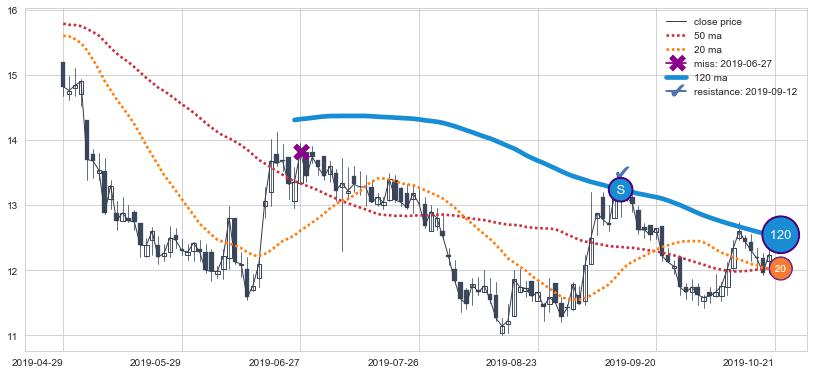 ➢ 最优均线组合共正确确认支撑阻力信号7处,正确确认率 70.00%