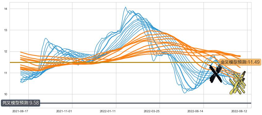 ➣ 34小时均线于(2022-08-11: 10.72)形成【金叉】基于【金叉历史模型】预测金叉后最高波峰价格: 11.87, 金叉后最高价格10.74,尚未达到预测最高波峰价格, 预期继续上涨