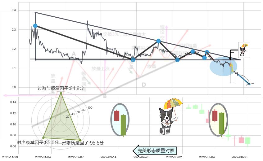 ➢ 【卖1】: 激进型 卖点→(2022-03-22: 0.142000 )形成突破下降三角形整理【整理】形态
