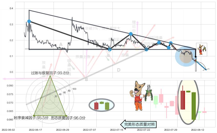 从2021-07-05至2022-08-12,共包含225个交易日,阶段股价下跌-109.15%,阶段股价变动位移路程比: 1 : 5,下跌趋势角度: 26.6