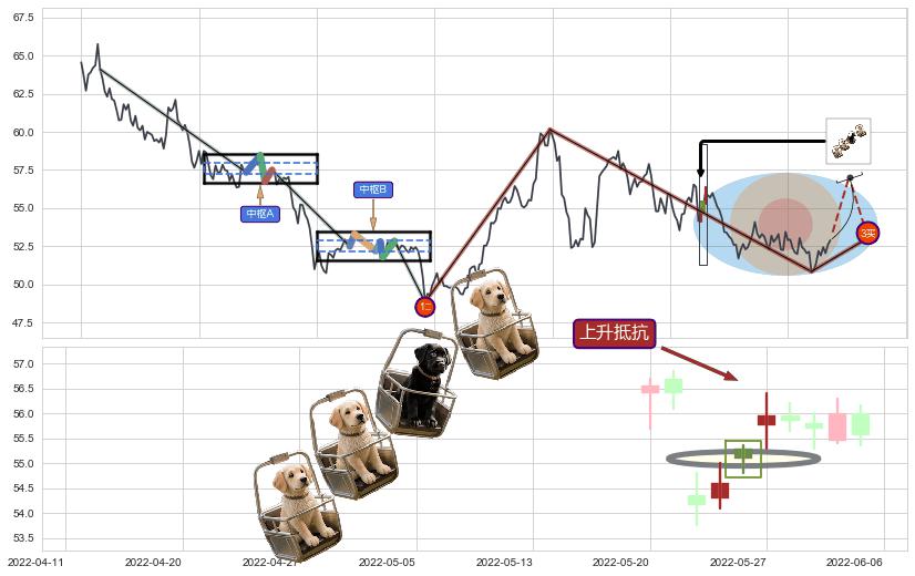 ➣ 【中枢B】:2021-10-15-2021-11-11,中枢由6笔构成,共20交易日, ZG=52.80, ZD=52.50