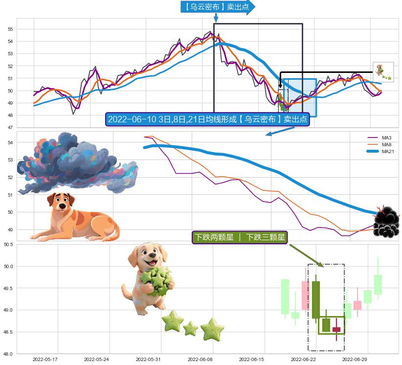 | 4 🅚:上探下跌 ➕ 🎢:【断头铡刀】卖出点均线组合卖出点信号形成后,猜想后续支撑破位,后市持续下跌 ☞ 看空信号 ⇥ 【均线】交织【🅚线】⇥ 综合量化分数: 46 | > |