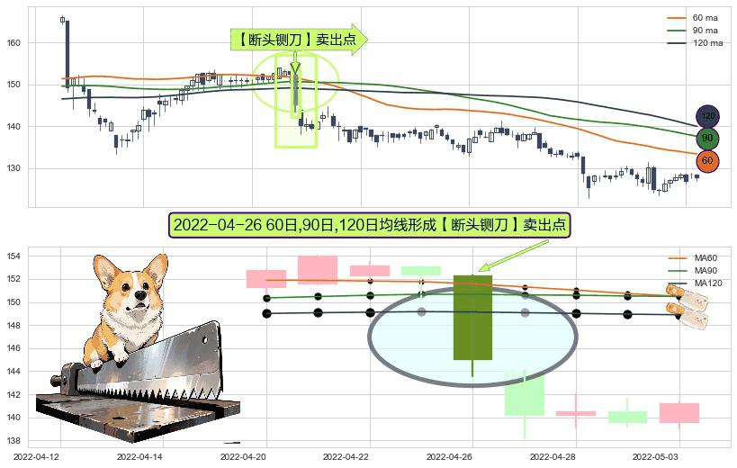形态多维评估: ⚀ 2022-04-26日显现 60日-90日-120日均线 【断头铡刀】卖出点 看空信号,后市看跌,卖出