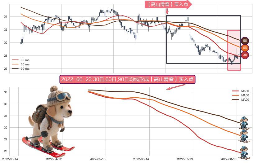 形态多维评估: ⚀ 2022-05-03日-2022-08-12日显现 30日-60日-90日均线 【高山滑雪】买入点 看多信号,后市看涨,买入