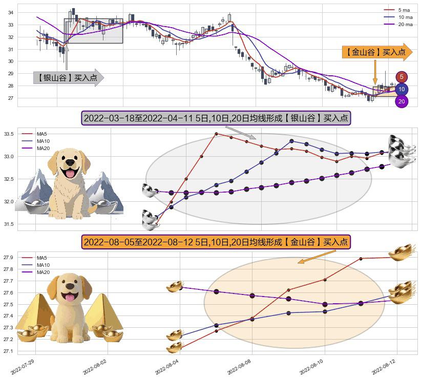 ⚄ 2022-08-08-日至2022-08-12-日显现 5日-10日-20日均线 【金山谷】买入点 其再次确认了买入信号,可靠性更强,买入