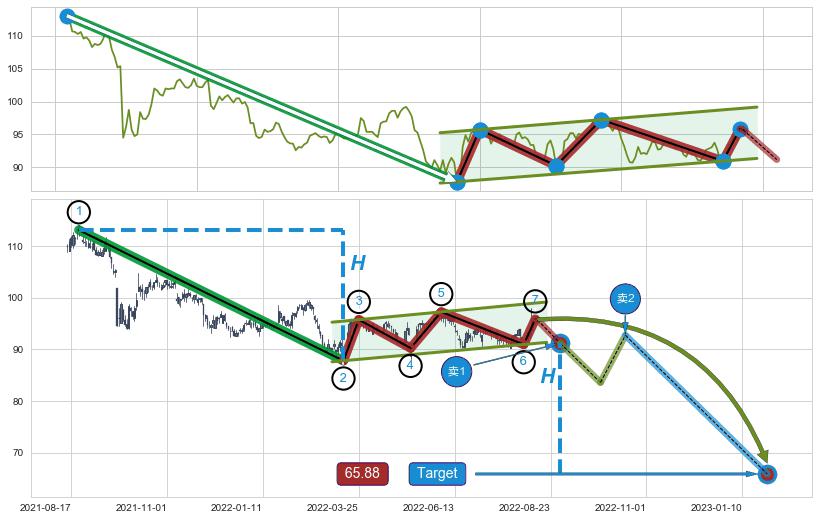 ➣ AI预测: 假定反转启动后, 第❸目标位置(2022-12-16, 87.80)