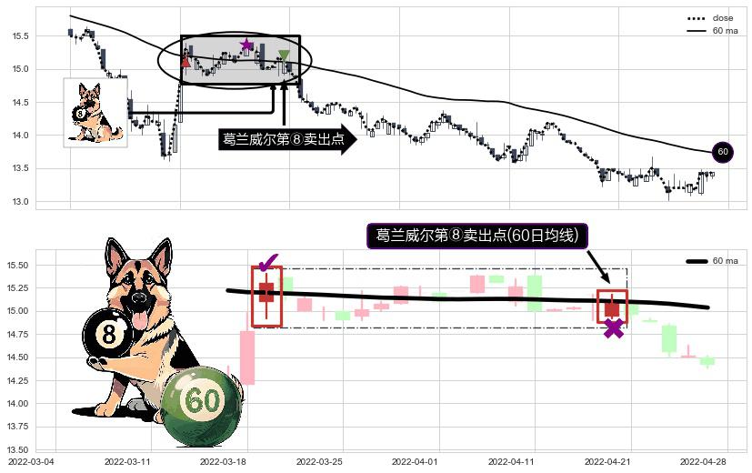 形态多维评估: ⚀ 2022-04-20-日显现 葛兰威尔均线 60日均线 第⑧卖出点 下降趋势的中继信号,后市看跌,卖出信号