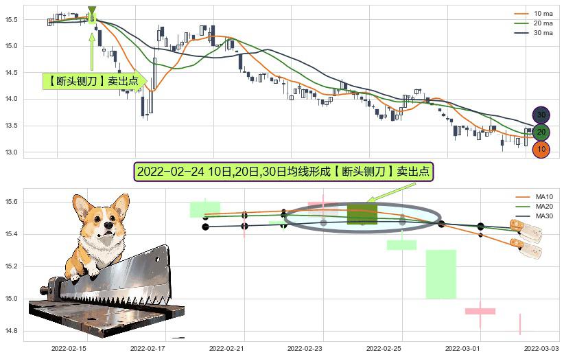 形态多维评估: ⚀ 2022-02-24日显现 10日-20日-30日均线 【断头铡刀】卖出点 看空信号,后市看跌,卖出