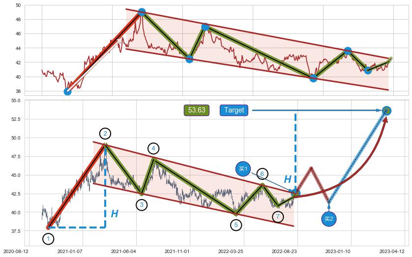 ➢ 2022-05-20到达第❶价格目标位置43.60