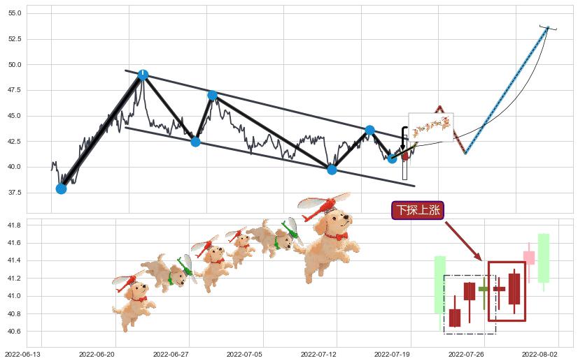 | 4 🅚:降势受阻 ➕ 📐:降旗形猜想突破点临近,临近关键阻力位,预期拉升突破上涨 ☞ 看多信号 ⇥ 【🅚线】交织【图形】⇥ 综合量化分数: 62 | > |