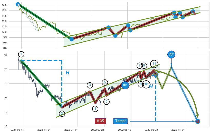 ➣ D点拟合预测价格12.82,距离最后交易收盘价格11.92相差 +7.54%