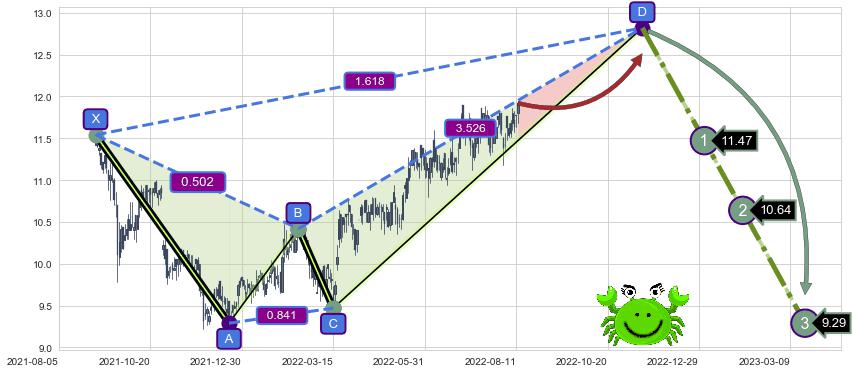 ➣ 未完成【螃蟹】形态起点X: 2021-09-02, 已到达C点: 2022-03-15, 预测最终D点: 2022-11-16, 共300交易日