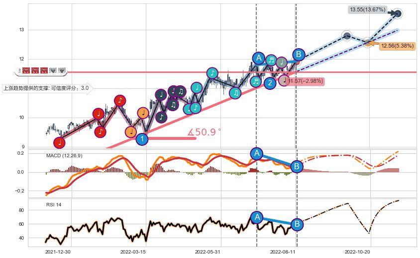 ➣ 预测:2022-10-19,【试探支撑】稳定目前上涨趋势的前提下,预测价格:12.56