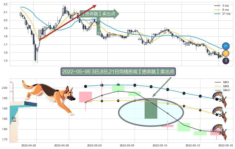 形态多维评估: ⚀ 2022-05-06日显现 3日-8日-21日均线 【绝命跳】卖出点 看空信号,后市看跌,卖出