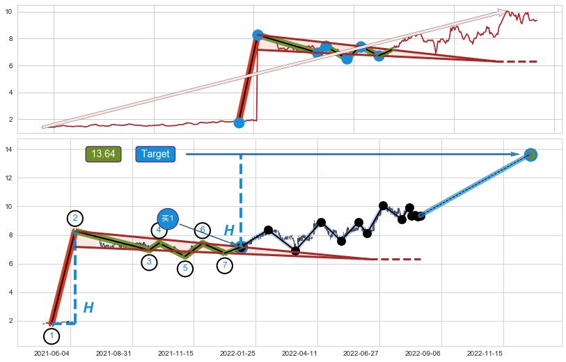 ➢ 最小中继整理涨幅→𝐇: 6.48 (𝐇楔型旗杆的长度:楔型起点→顶点)